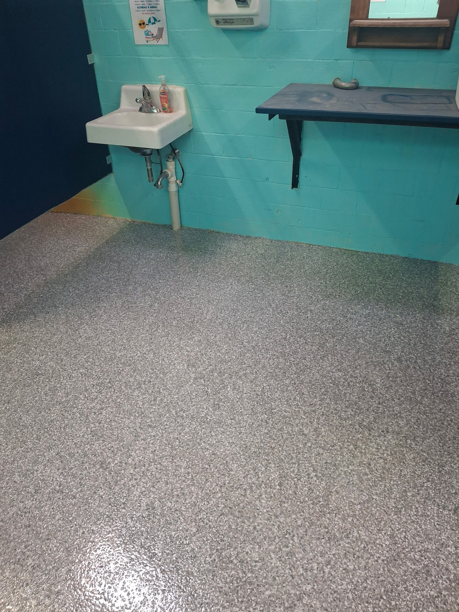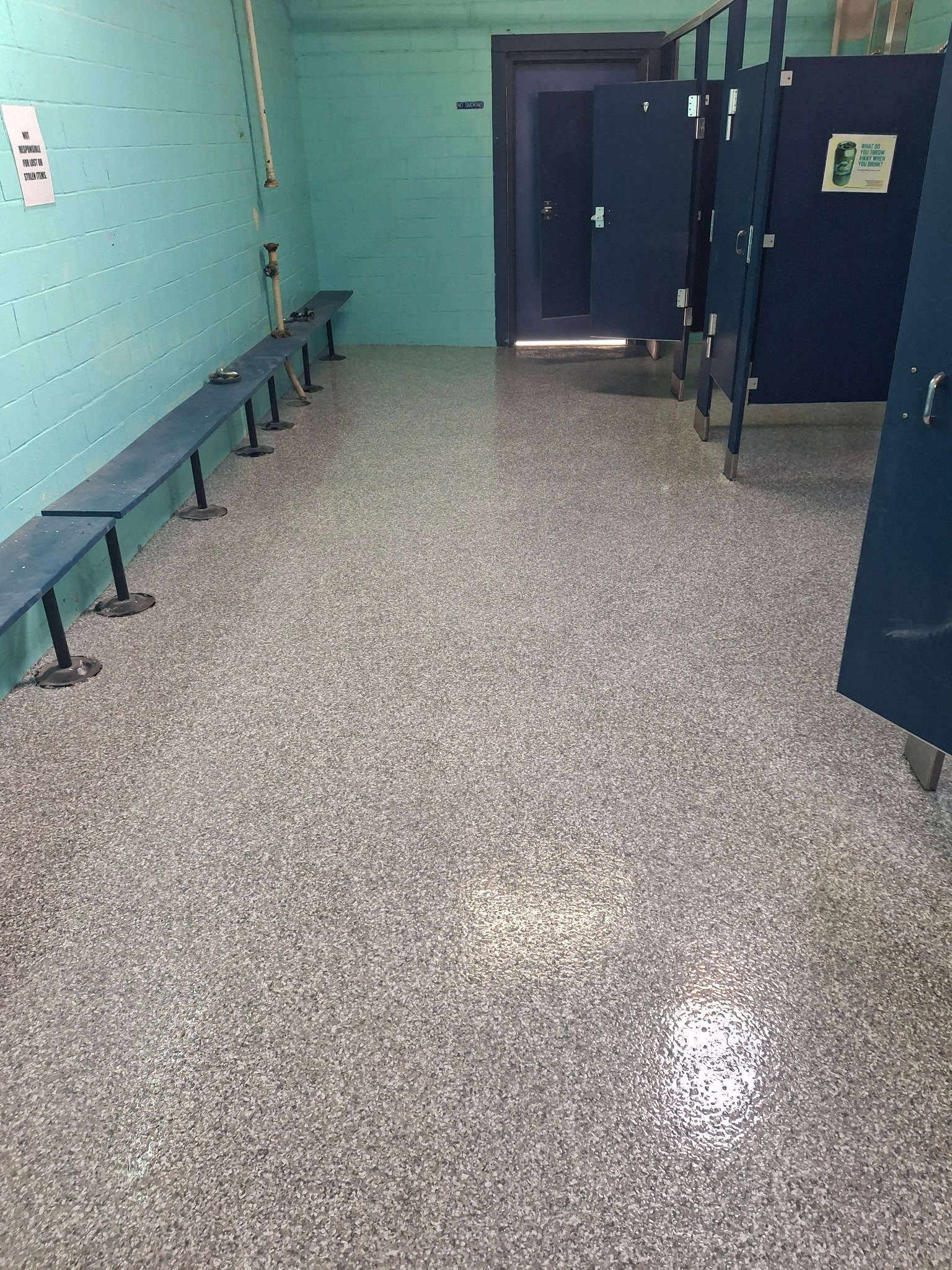 The New Hampton Parks and Recreation Department sought to refresh and protect the concrete floors in the boys’ and girls’ shower rooms at their municipal pool. With years of wear from heavy foot traffic, moisture, and seasonal use, the existing surfaces were due for a durable, slip-resistant upgrade that could withstand the demands of a busy community facility.