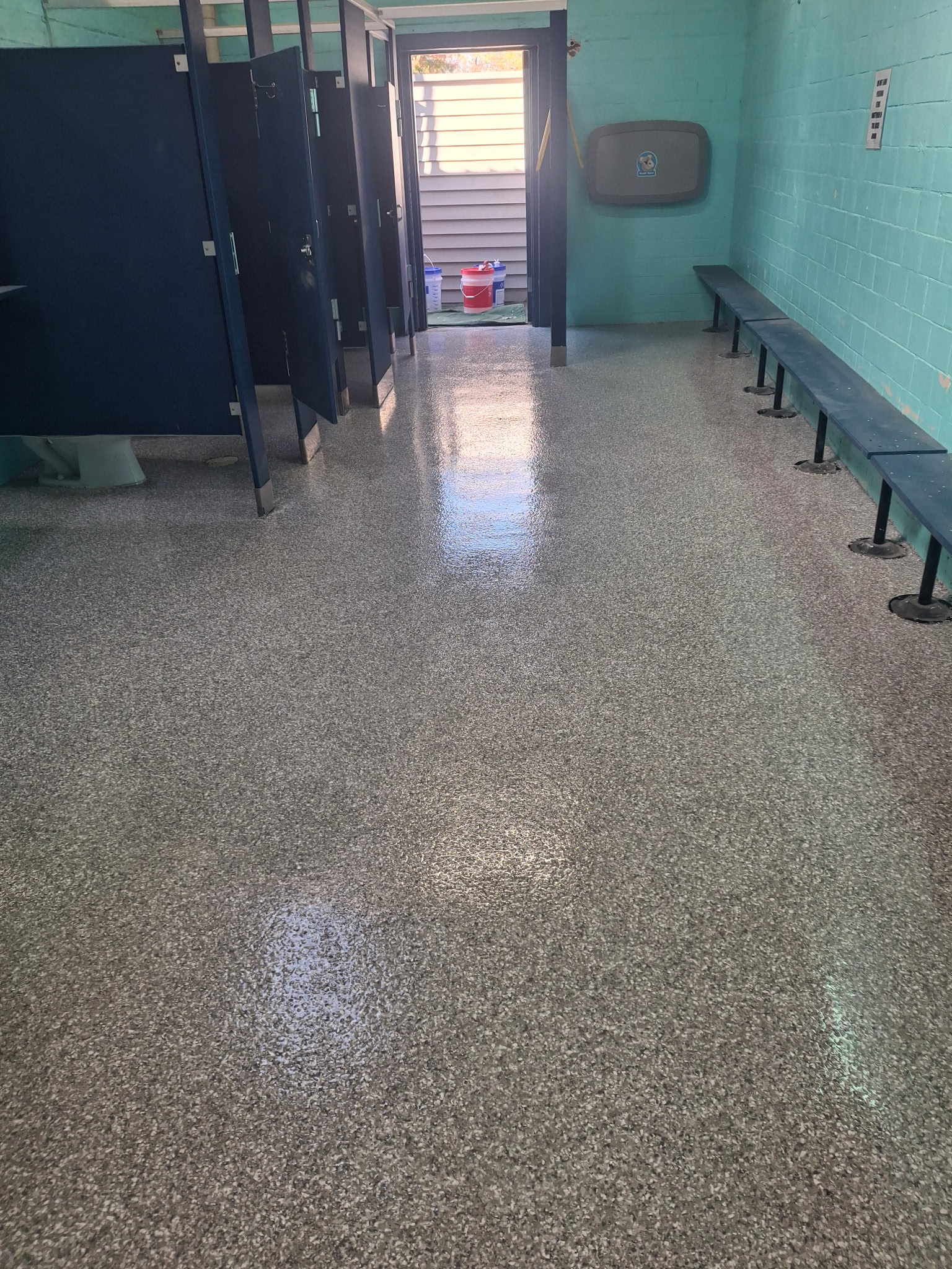 - Both shower rooms now feature clean, slip-resistant, and easy-to-maintain floors that elevate the overall facility experience.