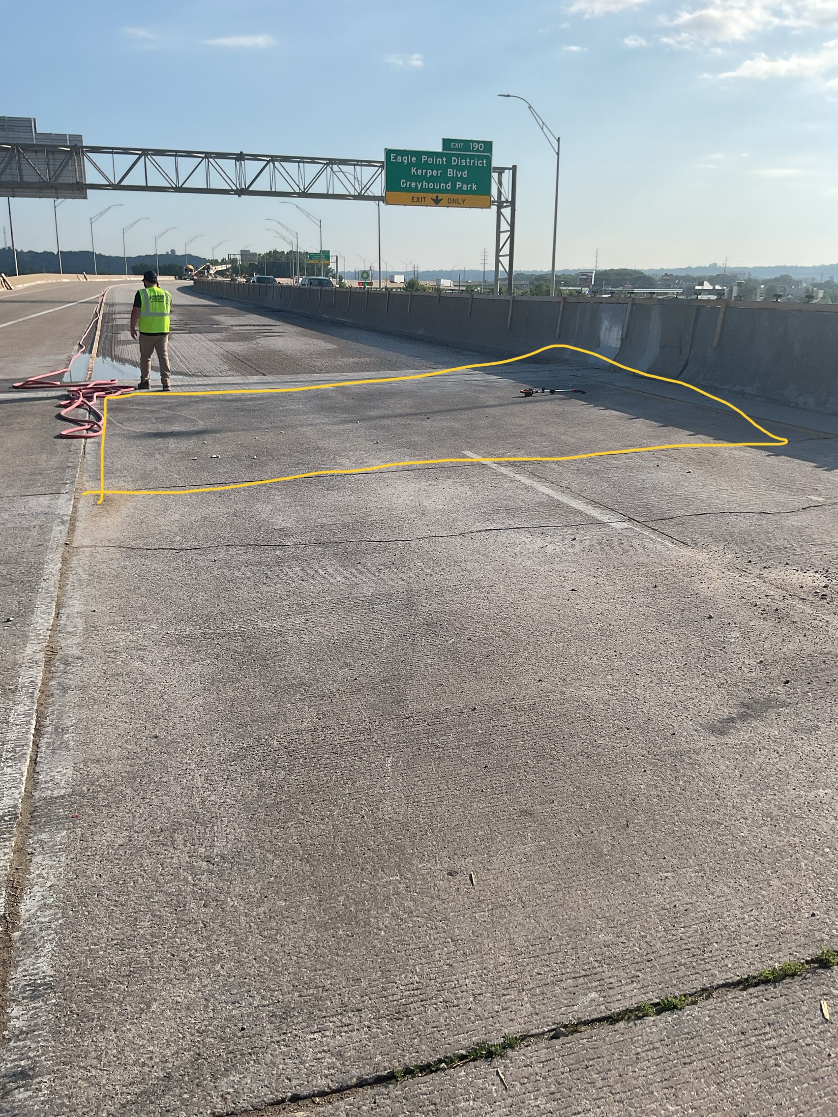 The fix was straightforward — drill through the slab and inject polyurethane foam beneath it to fill the void and stabilize the structure. Considering the heavy traffic volume on this highway, addressing the issue early prevented future failure and avoided the costly and time-consuming alternative of full slab replacement and highway closure.